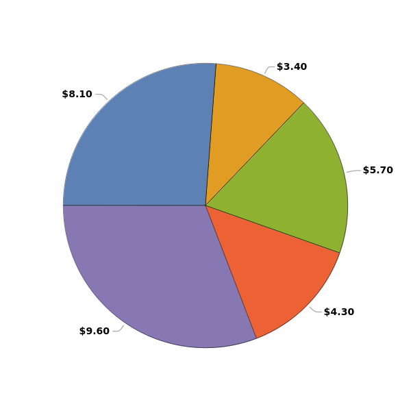 By default, each sector in the pie chart is labeled with a tooltip which shows its magnitude: