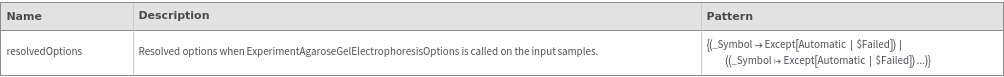 ExperimentAgaroseGelElectrophoresisOptions[samples]⟹resolvedOptions