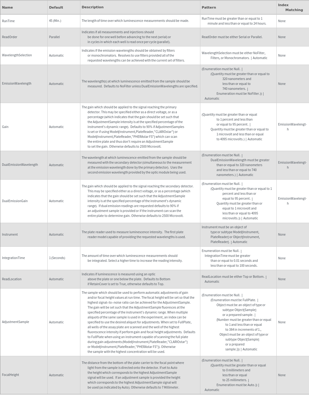 ExperimentLuminescenceKineticsOptions[samples]⟹resolvedOptions