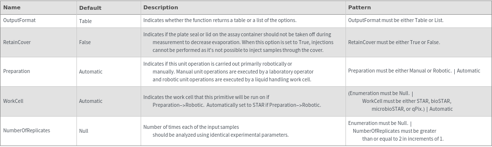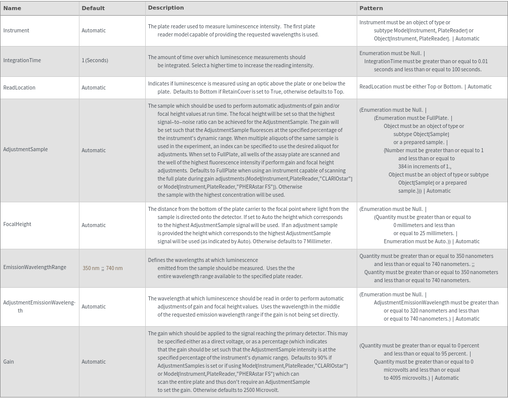 ExperimentLuminescenceSpectroscopyOptions[samples]⟹resolvedOptions