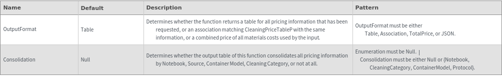 If OutputFormat -> Association is specified, this overrides the Consolidation option and returns a list of associations matching OperatorPriceTableP: