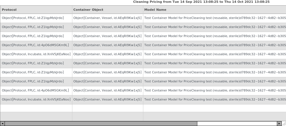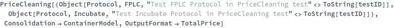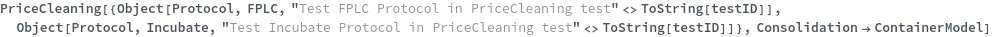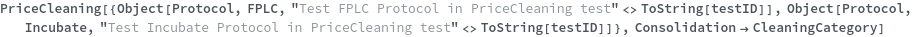 ParentProtocolRequired The following provided protocol(s) are subprotocols: `1`. These protocols' prices are already included in the price of their parent protocols. Please provide only completed parent protocols to the inputs of PriceCleaning. ProtocolNotCompleted The following provided protocol(s) are not yet completed and thus pricing from instrument time cannot be calculated: `1`. Please wait until these protocols are completed and then call this function again.