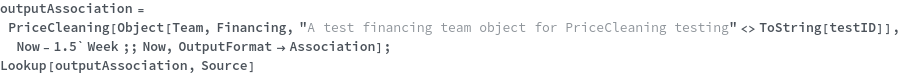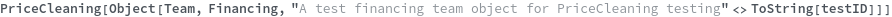 PriceCleaning[team, dateRange]⟹table