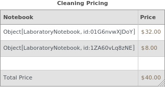 Displays the pricing information for all protocols tied to a given notebook: