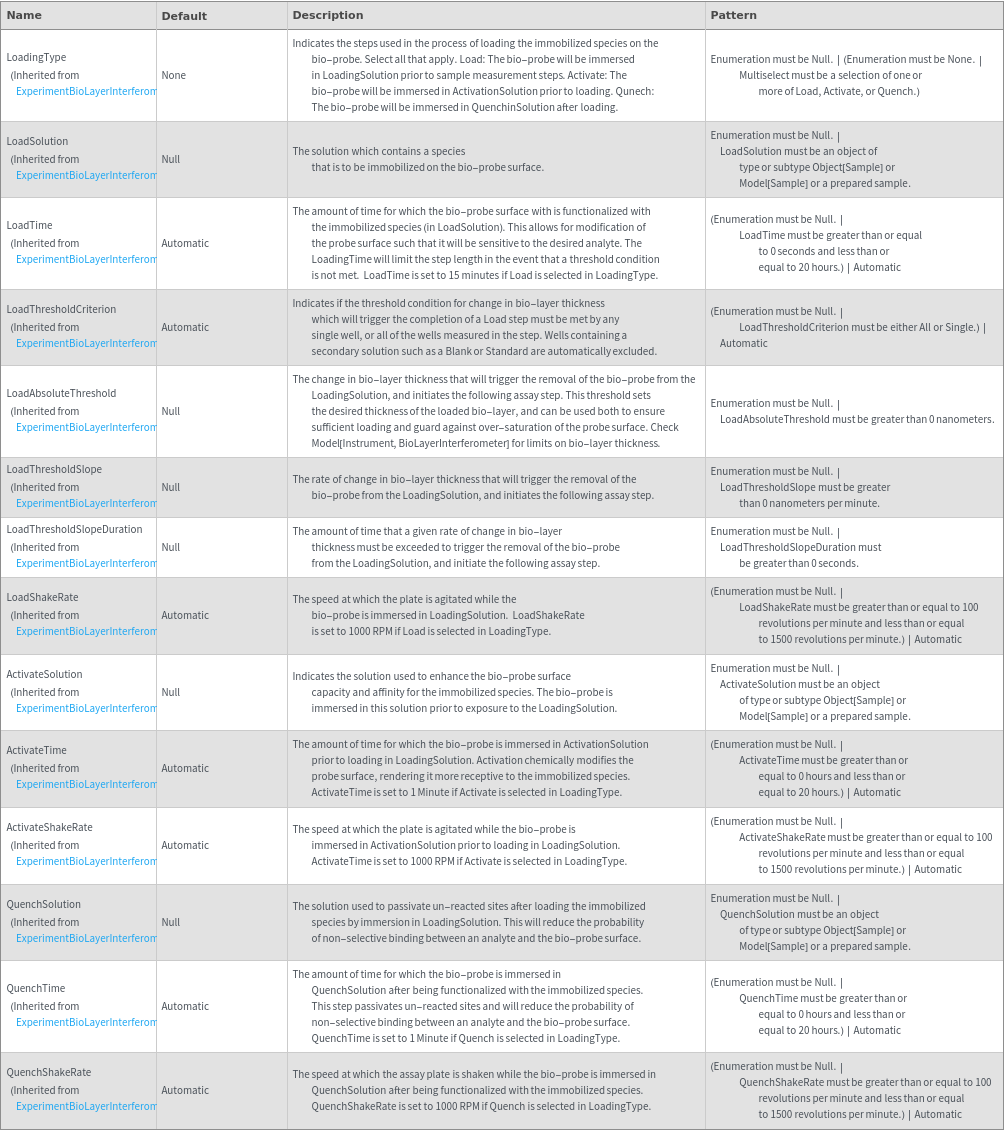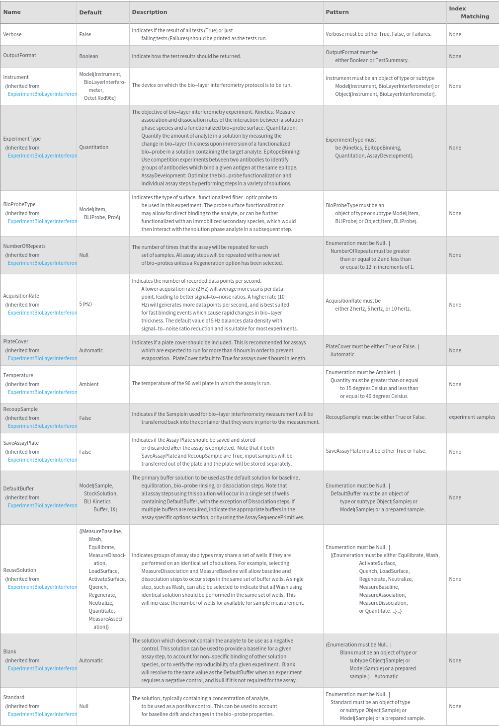 ValidExperimentBioLayerInterferometryQ[samples]⟹bools