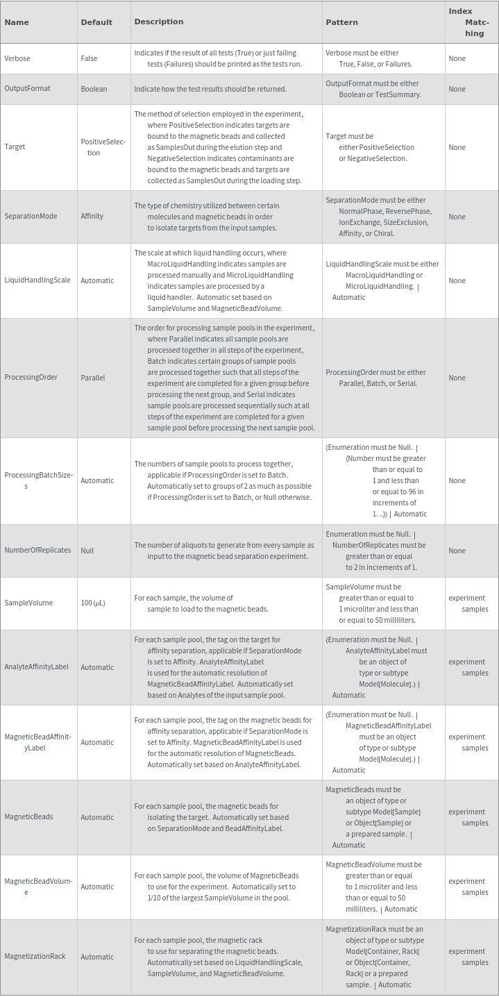 ValidExperimentMagneticBeadSeparationQ[samples]⟹boolean