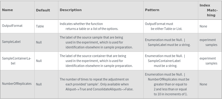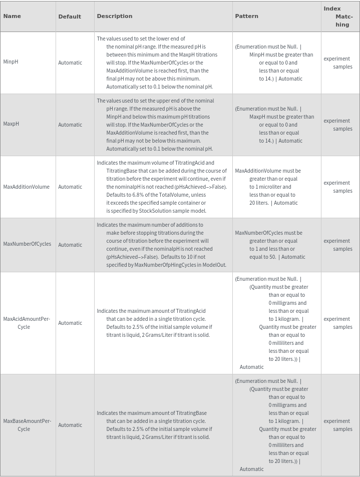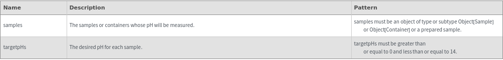 ExperimentAdjustpHOptions[samples,targetpHs]resolvedOptions