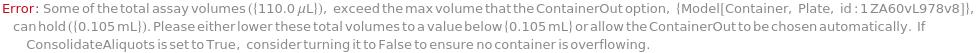 Default Calculation: Automatically set as the PreferredContainer for the AssayVolume of the sample. For plates, attempts to fill all wells of a single plate with the same model before aliquoting into the next.