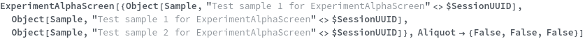Programmatic Pattern: ((ObjectP[{Model[Sample], Object[Sample]}] | _String) | Automatic) | Null