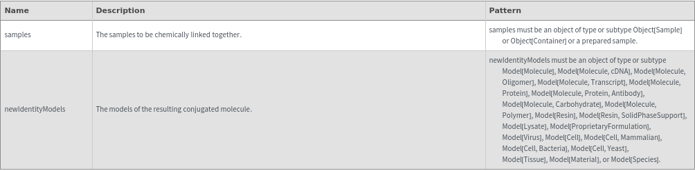 ExperimentBioconjugationOptions[samples, newIdentityModels]⟹resolvedOptions