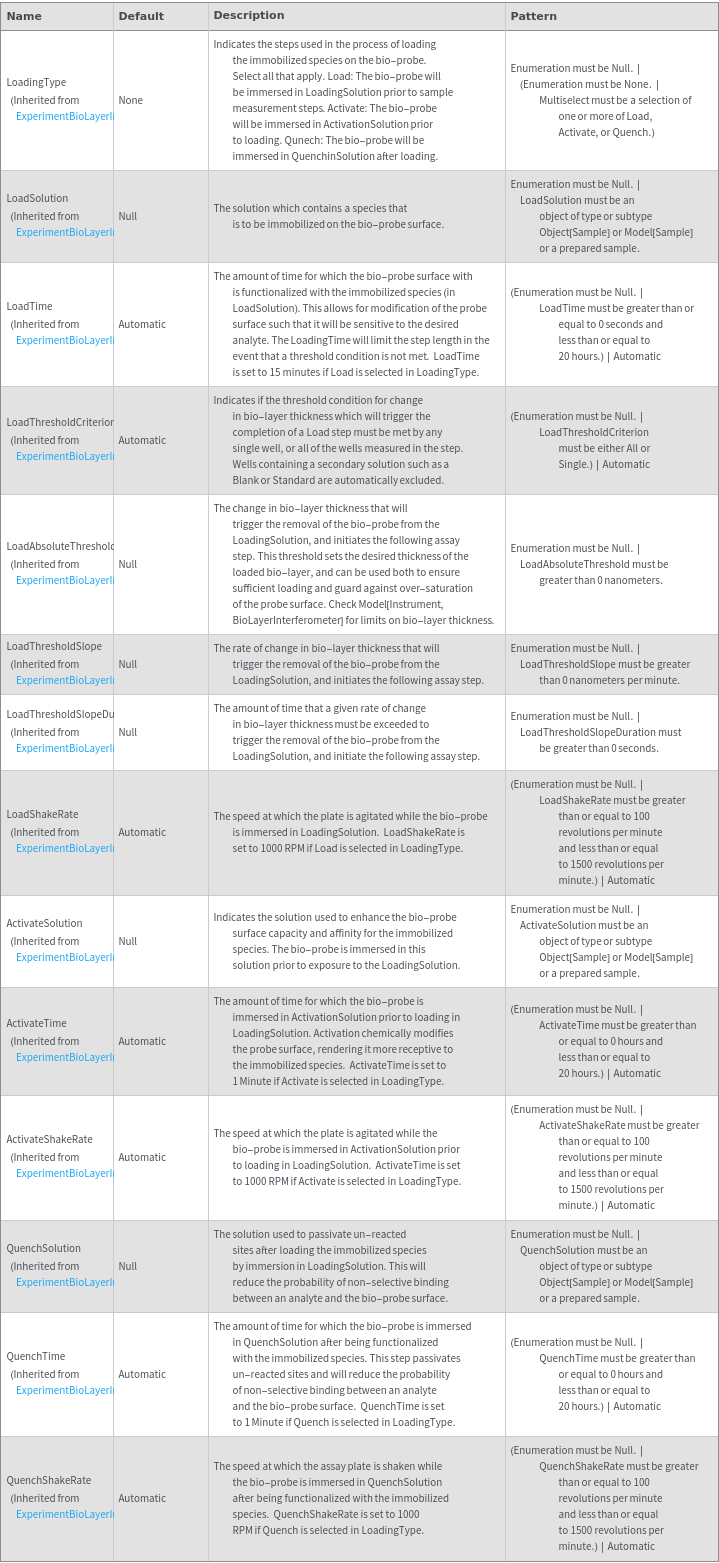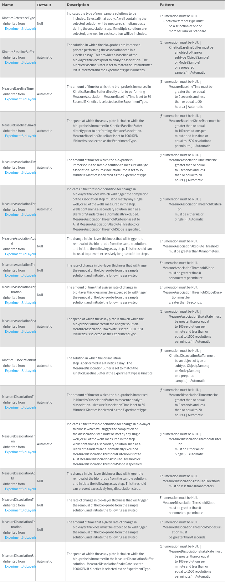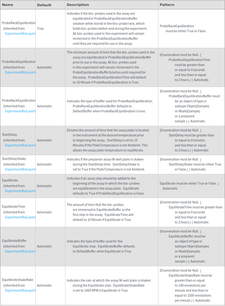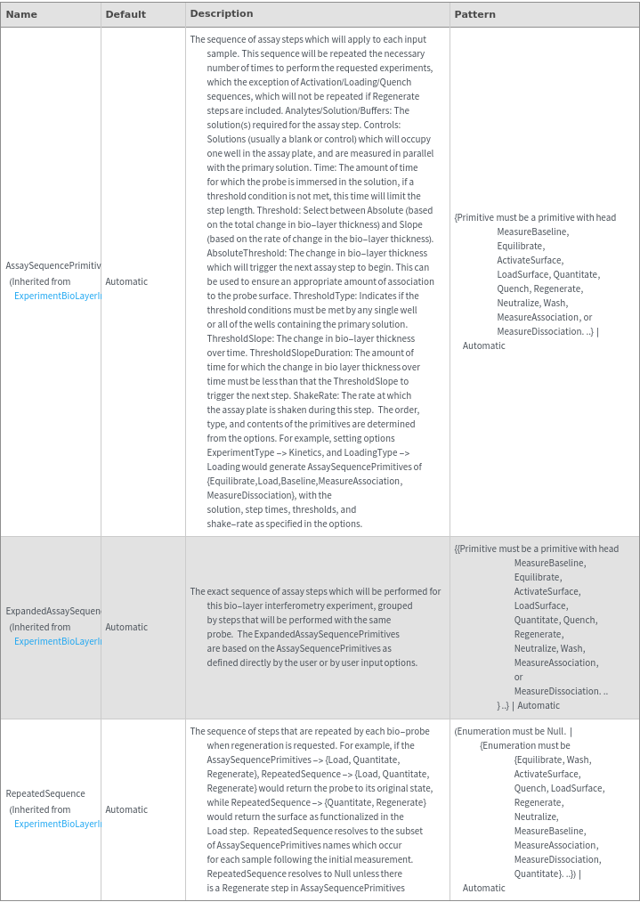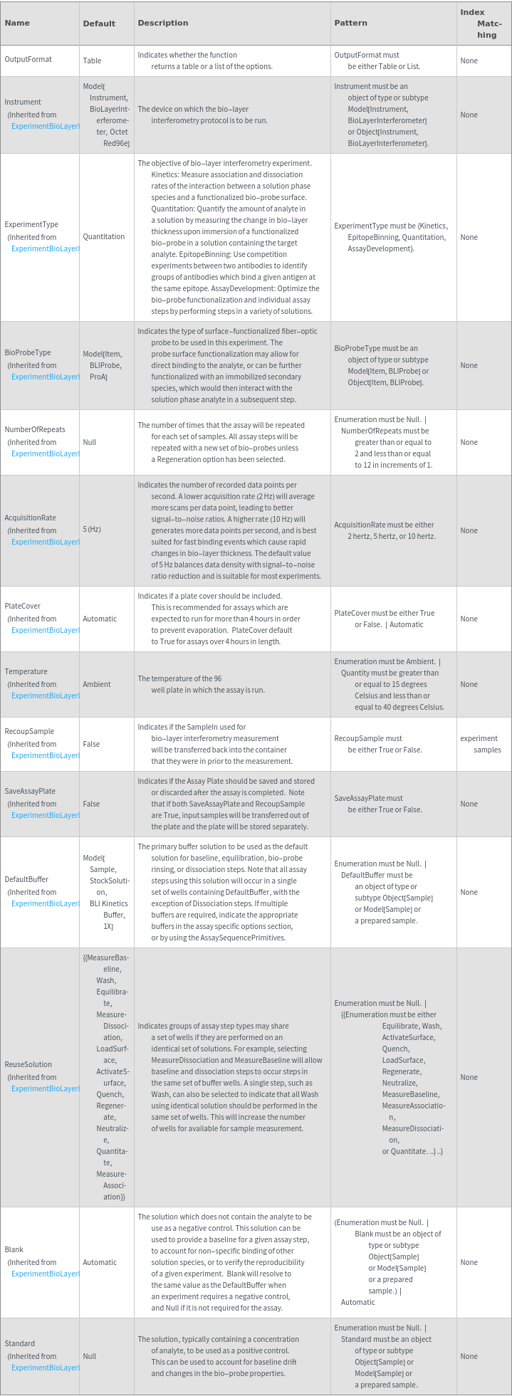 - The options returned by this function may be passed directly to ExperimentBioLayerInterferometry.