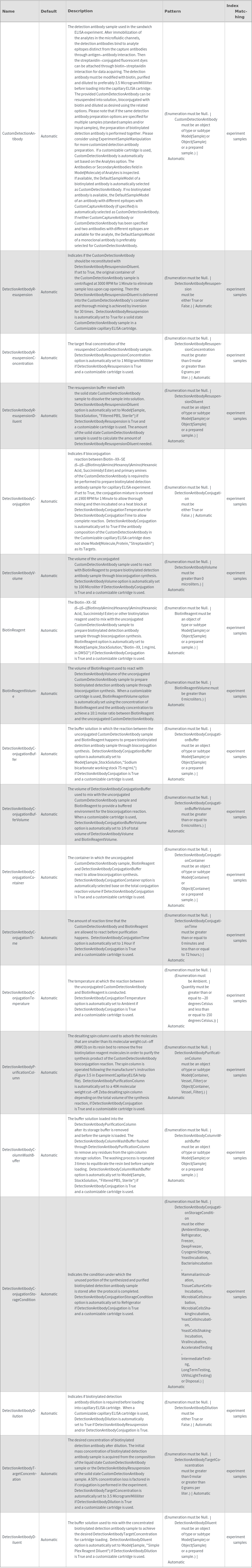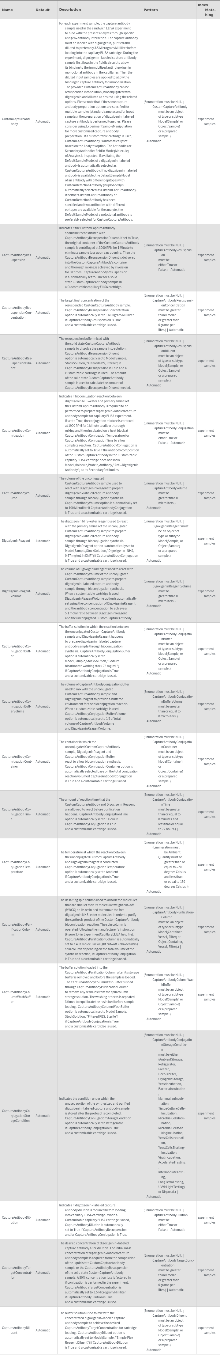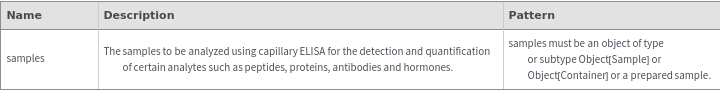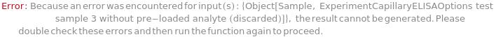 - The options returned by ExperimentCapillaryELISAOptions may be passed directly to ExperimentCapillaryELISA.