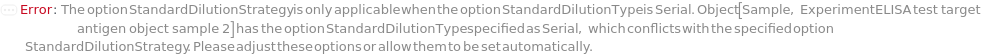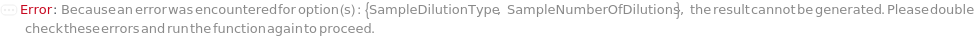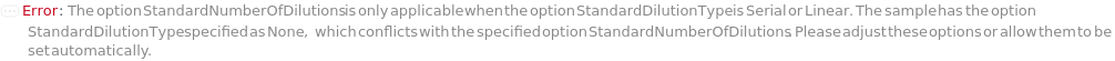 Default Calculation: Automatically set based on the systems of equations specified under the SampleDilutionType option. If no sample dilution options are specified, automatically set to 10 when SampleDilutionStrategy is Serial.