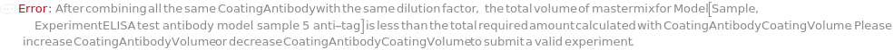 Default Calculation: If BlankCoatingAntibody is specified and BlankCoatingAntibodyDilutionFactor is not Null or 1, automatically set to 1.1*BlankCoatingAntibodyCoatingVolume/BlankCoatingAntibodyDilutionFactor.