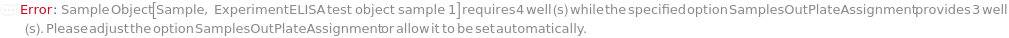 Default Calculation: If samples are pre-coated to more than one plate, SecondaryELISAPlate is automatically set to the second corresponding pre-coated plate. If the total number of Sample (including spiked samples and dilutions) times NumberOfReplicates plus standards, blanks, and moating samples exceeds 96, SecondaryELISAPlate is automatically set to the same container model as ELISAPlate.