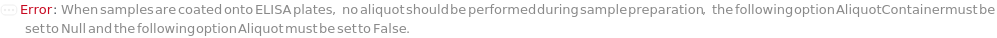 Default Calculation: If Method is IndirectELISA, IndirectSandwichELISA, or IndirectCompetitiveELISA and Blank is specified, automatically set to the same value as the option SecondaryAntibodyImmunosorbentVolume.