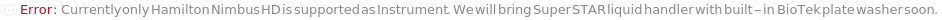 The instrument integrates a heater/cooler shaker, plate washer, and plate reader, and is used to dispense reagents into ELISA plates and transfer them between incubation and washing modules during the assay. See InstrumentTable section in the help file for details about integrated instruments and their operating limits.