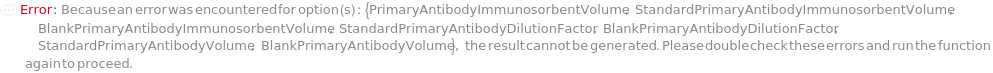 Default Calculation: If BlankSecondaryAntibody is specified and BlankSecondaryAntibodyDilutionFactor is not Null or 1, automatically set to 1.1*BlankSecondaryAntibodyImmunosorbentVolume/BlankSecondaryAntibodyDilutionFactor.