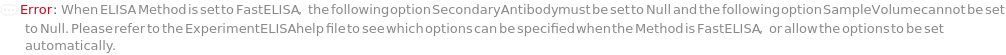Default Calculation: If Method is FastELISA and Blank is specified, automatically set to the same value in the option CoatingAntibodyCoatingVolume.