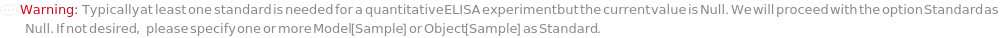 Default Calculation: If Blank is specified and Method is DirectSandwichELISA or IndirectSandwichELISA, automatically set to the same value in the option CaptureAntibodyCoatingVolume.