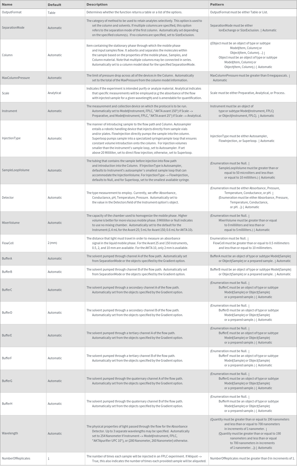 ExperimentFPLCOptions[objects]⟹resolvedOptions