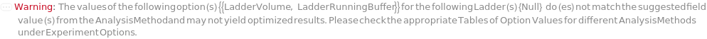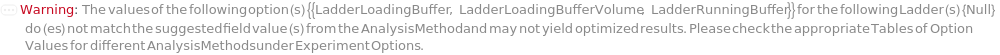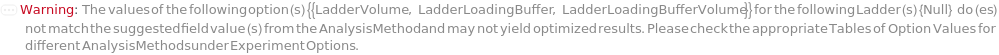 Default Calculation: Automatically set to the LadderLoadingBuffer field of the AnalysisMethod. If PreparedPlate is True, automatically set to Null. For a list of the default LadderLoadingBuffer for each AnalysisMethod, see Figure 3.4 under LadderLoadingBuffer of Experiment Options.