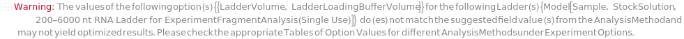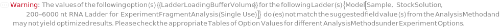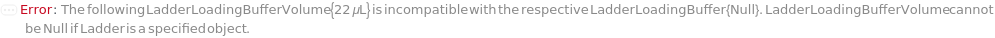 The volume of LadderLoadingBuffer added to the Ladder (after aliquoting, if applicable), to either add markers to or further dilute the Ladder prior to loading into the instrument. If PreparedPlate is True, this option is not applicable and is set to Null.