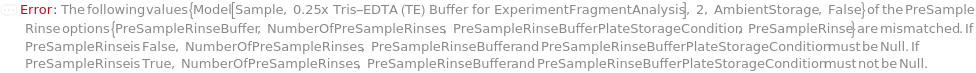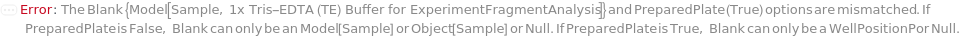 Default Calculation: If SampleDilution is set to True, automatically set to Model[Sample, "1x Tris-EDTA (TE) Buffer for ExperimentFragmentAnalysis"]. If PreparedPlate is True OR SampleDilution is set to False, automatically set to Null.