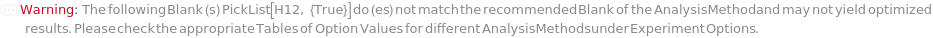 Default Calculation: Automatically set to the Blank field of the AnalysisMethod if there are wells unoccupied by the samples or ladders. If PreparedPlate is True and Blank is not specified, automatically set to Null. For a list of the default Blank for each AnalysisMethod, see Figure 3.5 under Blank of Experiment Options.