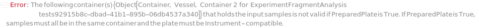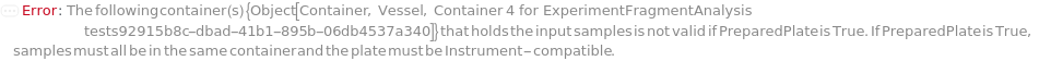 Indicates if SamplesIn are in an instrument-compatible plate (Model[Container, Plate, "96-well Semi-Skirted PCR Plate for FragmentAnalysis"]) that contain all other necessary components (Ladders, Blanks, LoadingBuffer (if applicable)). If PreparedPlate is True, Ladders and Blanks, if any, are designated by Well Position(s) that contain ladder or blank solutions. All wells contain a solution of least 24 Microliter volume to avoid damage to the capillary array. Prepared plates are directly placed in the sample drawer of the instrument, ready for injection, and does not involve any plate preparation steps. Options including SampleVolume, SampleDiluent, SampleDiluentVolume, SampleLoadingBuffer, SampleLoadingBufferVolume, LadderVolume, LadderLoadingBuffer and LadderLoadingBufferVolume are not applicable and are set to Null.