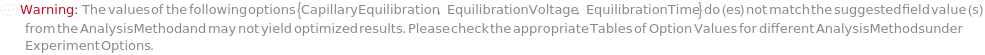 Default Calculation: If CapillaryEquilibration is True and AnalysisMethod is specified, automatically set to the EquilibrationTime field of the AnalysisMethod.