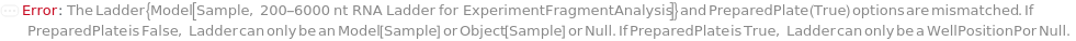 Default Calculation: If PreparedMarkerPlate is specified, set to the content(s) of the well matching the WellPosition of the Ladder. If PreparedMarkerPlate is Null, MarkerInjection is True and Ladder is not Null, automatically set to the LadderMarker field of the AnalysisMethod, if not Null. If PreparedMarkerPlate is Null, MarkerInjection is True, Ladder is not Null and LadderMarker field of AnalysisMethod is Null, automatically set to Model[Sample, "100-3000 bp DNA Ladder for ExperimentFragmentAnalysis"].