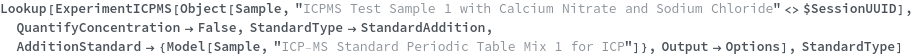 Default Calculation: Automatically set to External if any of ExternalStandard, ExternalStandardElement or StandardDilutionCurve is specified; otherwise, automatically set to StandardAddition if any of AdditionStandard, StandardAdditionElements, StandardAdditionCurve, StandardSpiledSample is specified; otherwise if QuantifyConcentration for any Elements is set to True, set to External. If all above doesn't hold, set to None.