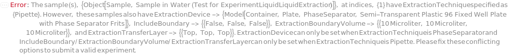 Default Calculation: If ExtractionTechnique is set to PhaseSeparator, ExtractionDevice will be set to Model[Container, Plate, PhaseSeparator, "Semi-Transparent Plastic 96 Fixed Well Plate with Phase Separator Frits"].