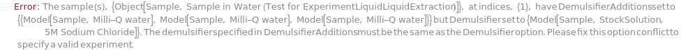 Default Calculation: If DemulsifierAdditions is specified, automatically set to the demulsifier specified in DemulsifierAdditions. Otherwise, automatically set to Model[Sample, StockSolution, "5M Sodium Chloride"] if DemulsifierAmount is specified. Otherwise, set to Null.
