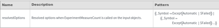 returns the resolved options for ExperimentMeasureCount when it is called on objects.