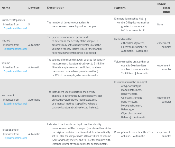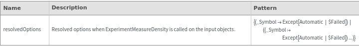 ExperimentMeasureDensityOptions[objects]⟹resolvedOptions