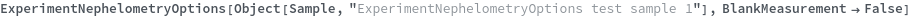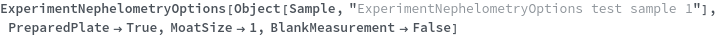 returns the resolved options for ExperimentNephelometry when it is called on samples.