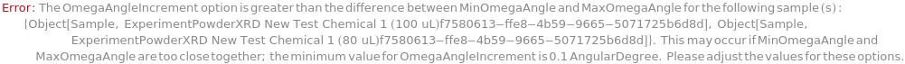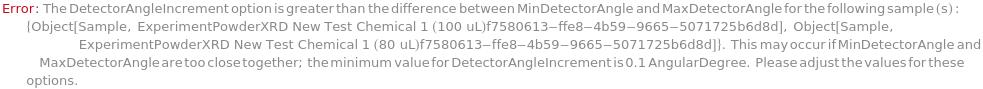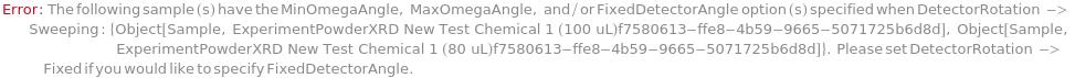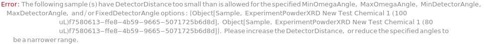 Default Calculation: Automatically set to Null if DetectorRotation-> Sweeping, or to an angle based on the DetectorDistance, MaxOmegaAngle, and OmegaAngleIncrement options if DetectorRotation-> Fixed.