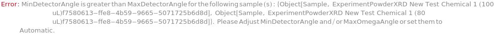Default Calculation: Automatically set to Null if DetectorRotation-> Sweeping, or to an angle based on the DetectorDistance, MinOmegaAngle, and OmegaAngleIncrement options if DetectorRotation-> Fixed.