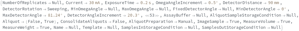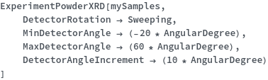 Default Calculation: Automatically set to Null if DetectorRotation -> Fixed, or to an angle based on the DetectorDistance option if DetectorRotation -> Sweeping.