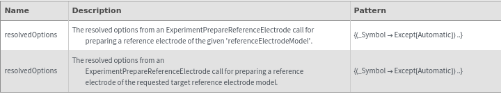 ExperimentPrepareReferenceElectrodeOptions[referenceElectrodeModel]⟹resolvedOptions