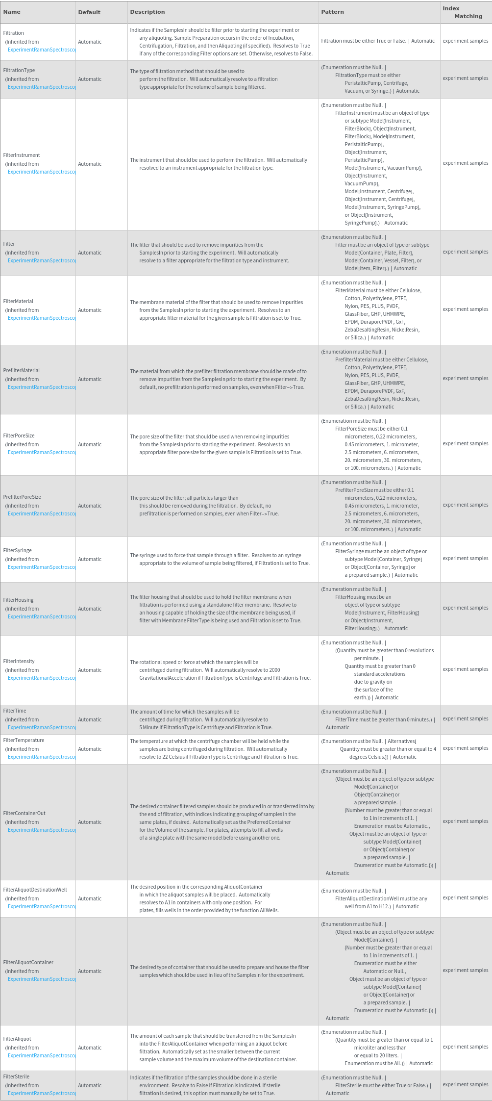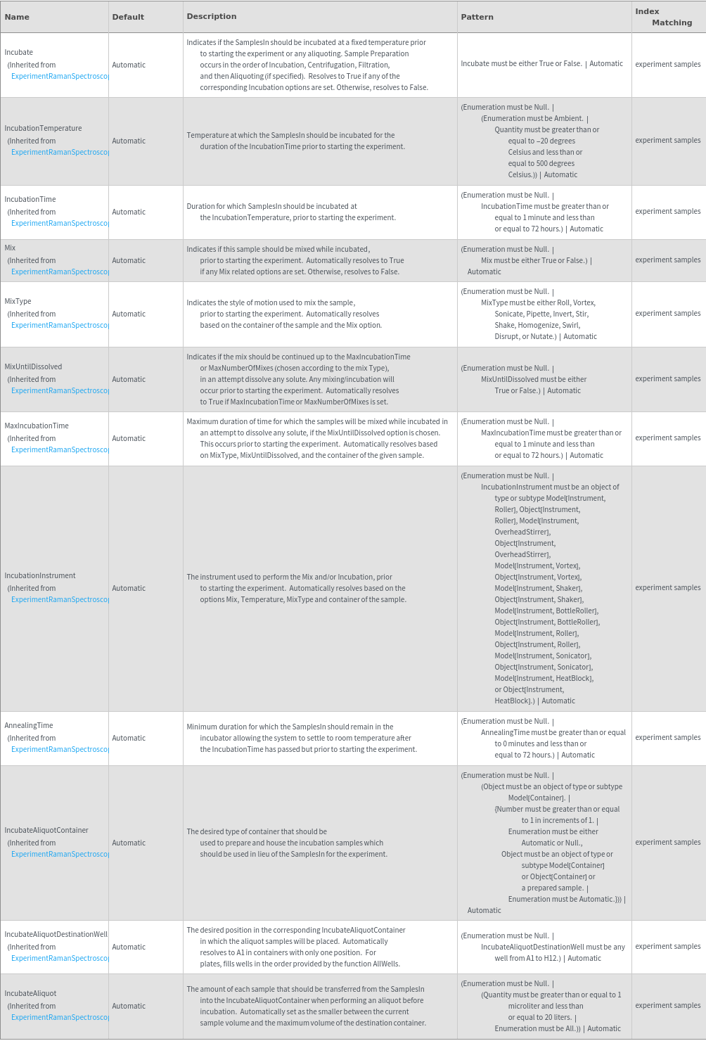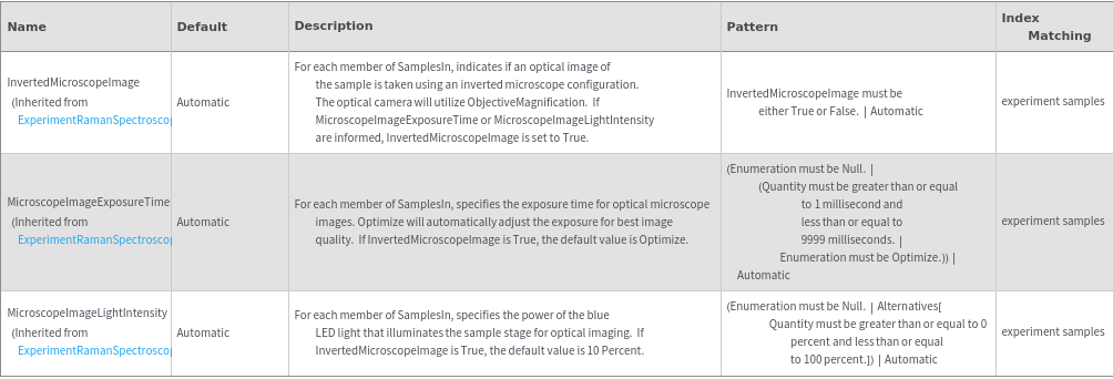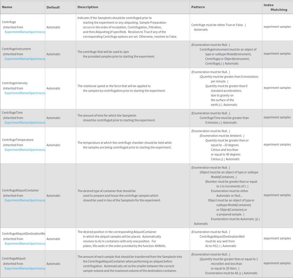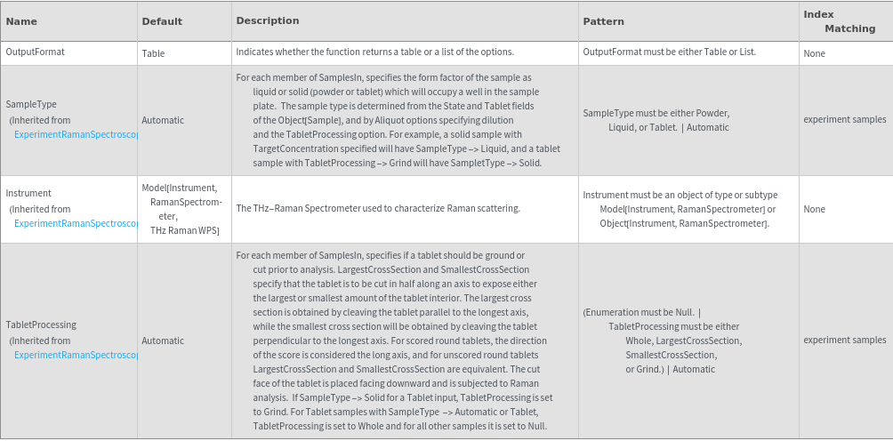 - The options returned by this function may be passed directly to ExperimentRamanSpectroscopy.