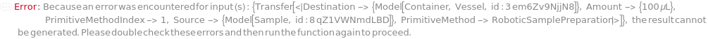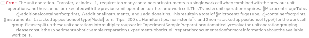 Programmatic Pattern: (((ObjectP[{Model[Container], Object[Container]}] | _String) | (Automatic | Null) | {GreaterEqualP[1, 1] | (Automatic | Null), (ObjectP[{Model[Container], Object[Container]}] | _String) | (Automatic | Null)} | {((ObjectP[{Model[Container], Object[Container]}] | _String) | (Automatic | Null))..} | {({GreaterEqualP[1, 1] | (Automatic | Null), (ObjectP[{Model[Container], Object[Container]}] | _String) | (Automatic | Null)} | (Automatic | Null))..}) | Automatic) | Null
