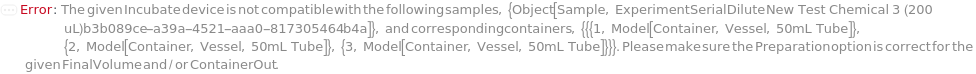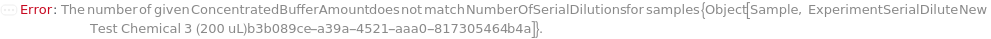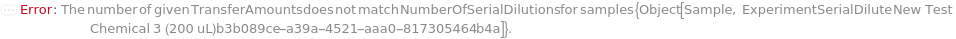 Using the NumberOfSerialDilutions option will resolve the lengths of FinalVolume, SerialDilutionFactors and/or TargetConcentrations: