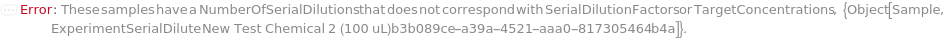 The factors by which you wish to reduce the concentrations starting with SamplesIn, followed by each previous dilution in the series of dilutions. This or TargetConcentrations must be provided, or an error is thrown.