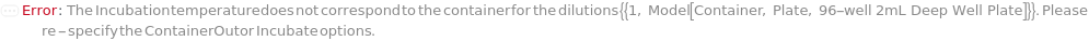 Default Calculation: Automatically set as the PreferredContainer for the AssayVolume of the sample. For plates, attempts to fill all wells of a single plate with the same model before diluting into the next.