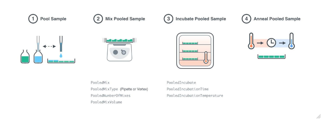 The desired container filtered samples should be produced in or transferred into by the end of filtration, with indices indicating grouping of samples in the same plates, if desired.