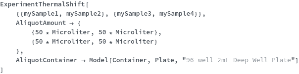 Indicates if aliquots should be taken from the SamplesIn and transferred into new AliquotSamples used in lieu of the SamplesIn for the experiment. Note that if NumberOfReplicates is specified this indicates that the input samples will also be aliquoted that number of times. Note that Aliquoting (if specified) occurs after any Sample Preparation (if specified).