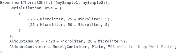 Default Calculation: Automatically set as the PreferredContainer for the AssayVolume of the sample. For plates, attempts to fill all wells of a single plate with the same model before aliquoting into the next.